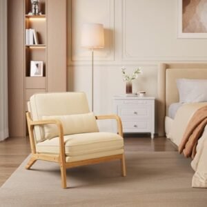 Ahomly Accent Chair Bedroom Chair with Lumbar Pillow Arm Chair with Solid Wood Frame, Soft and Thick Cushion for Living Room, Bedroom, Reading Room, Sunroom, Balcony, Reception Room, Linen Beige